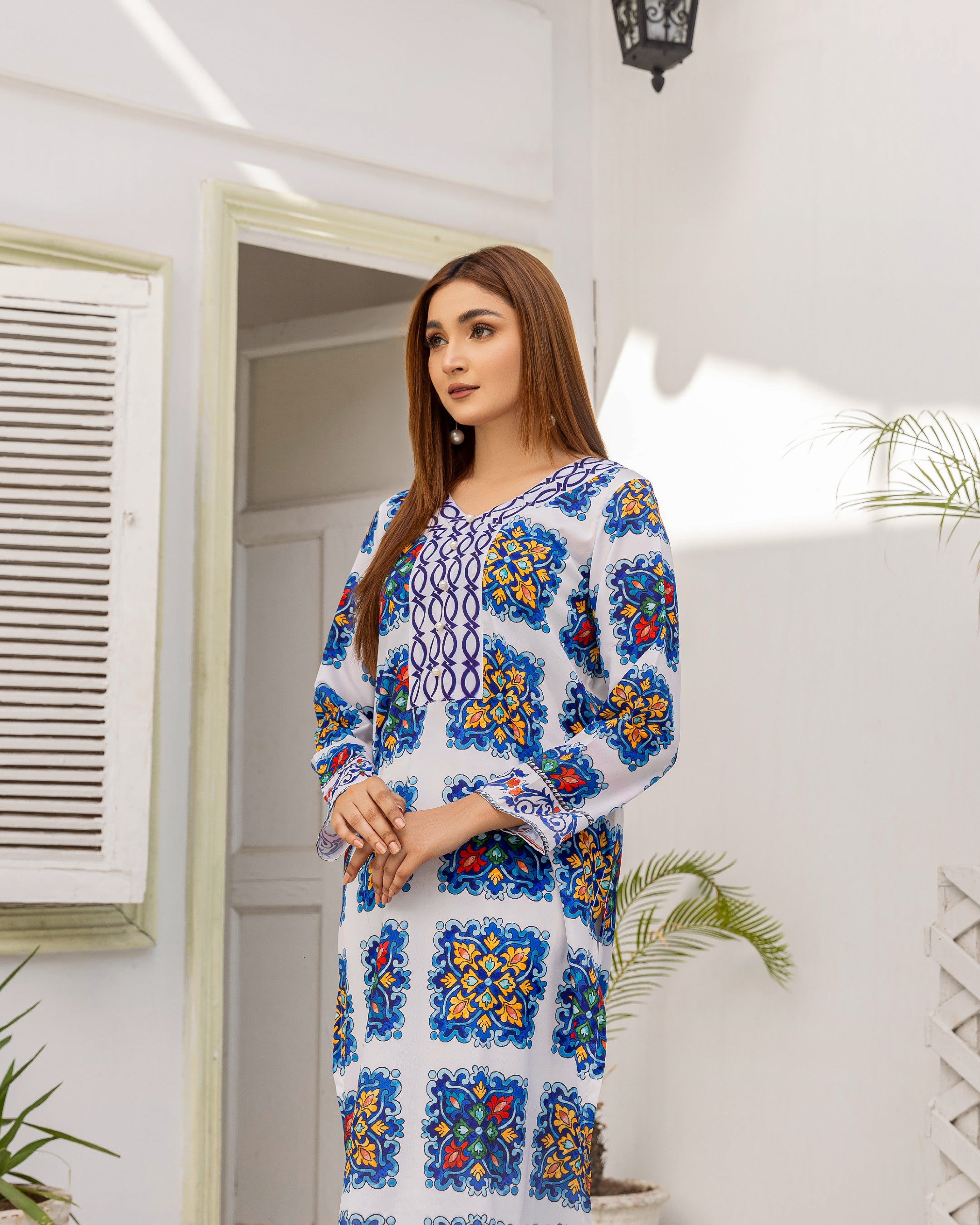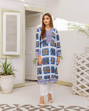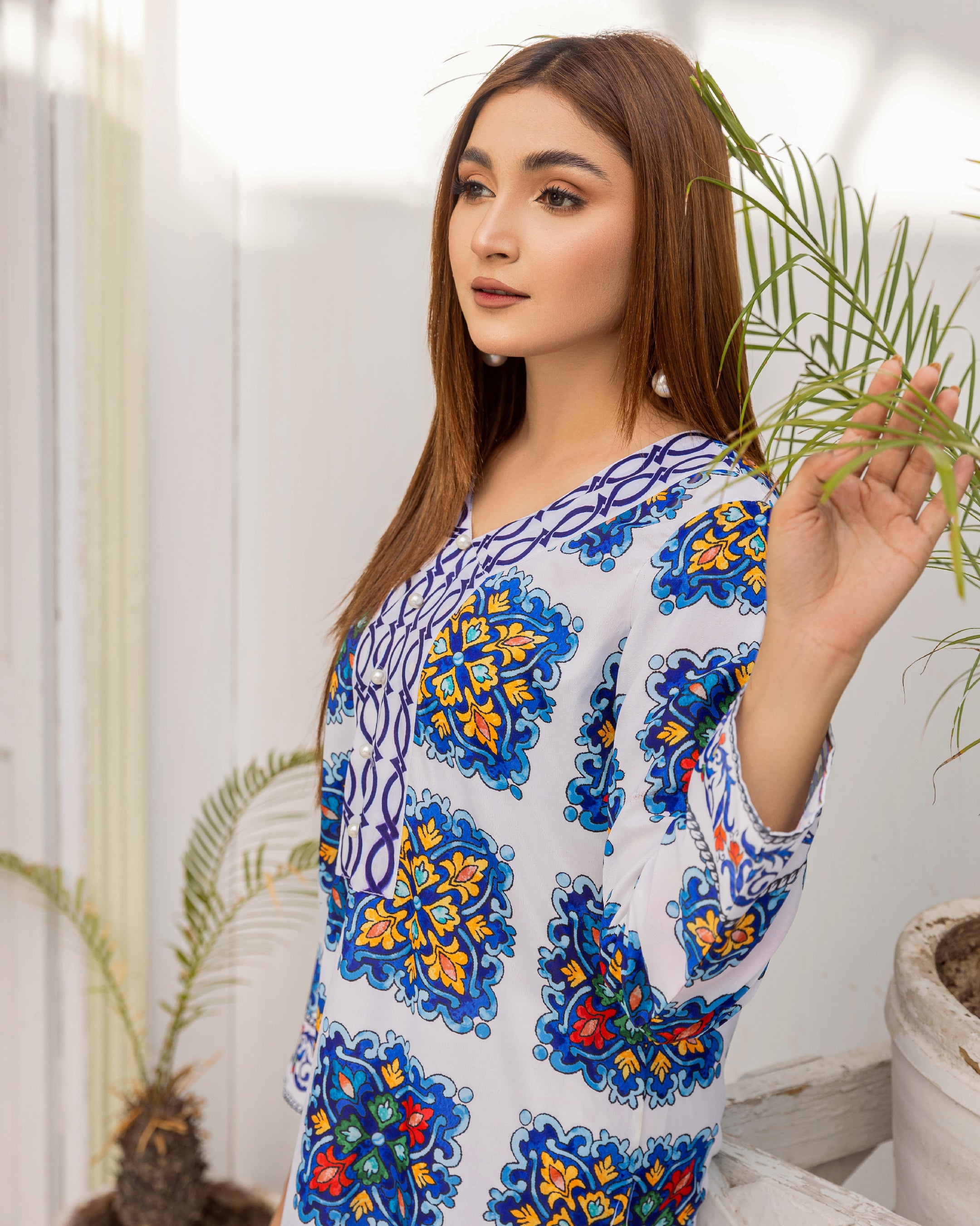 BLUE POTTERY GEOMETRIC LONG SHIRT