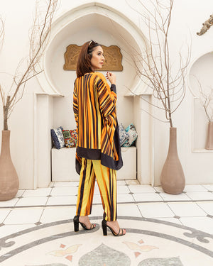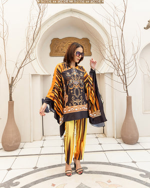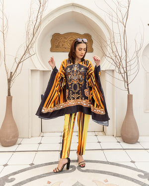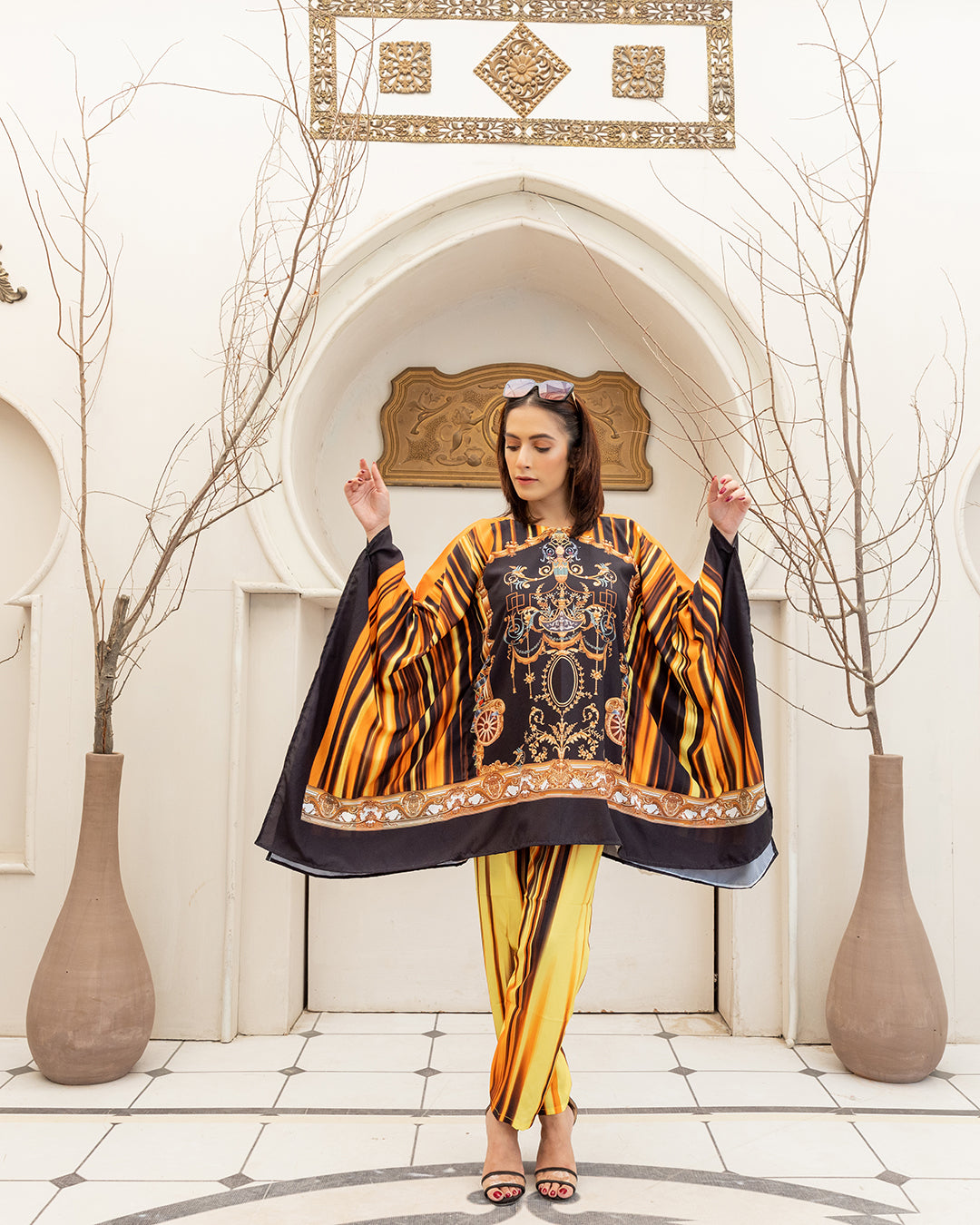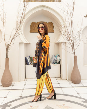 This beautiful printed trouser & shirt outfit made in soft grip silk fabric. top Length is 28. stitched styleish & westren cutline. Model is wearing size S.