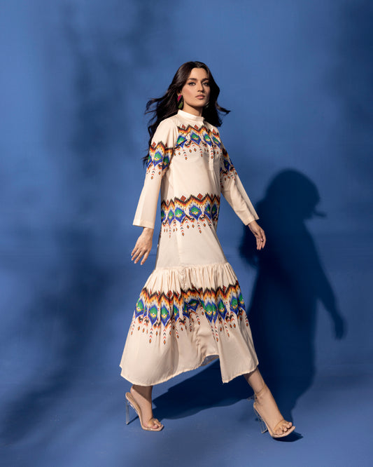 BLUE POTTERY GEOMETRIC LONG SHIRT