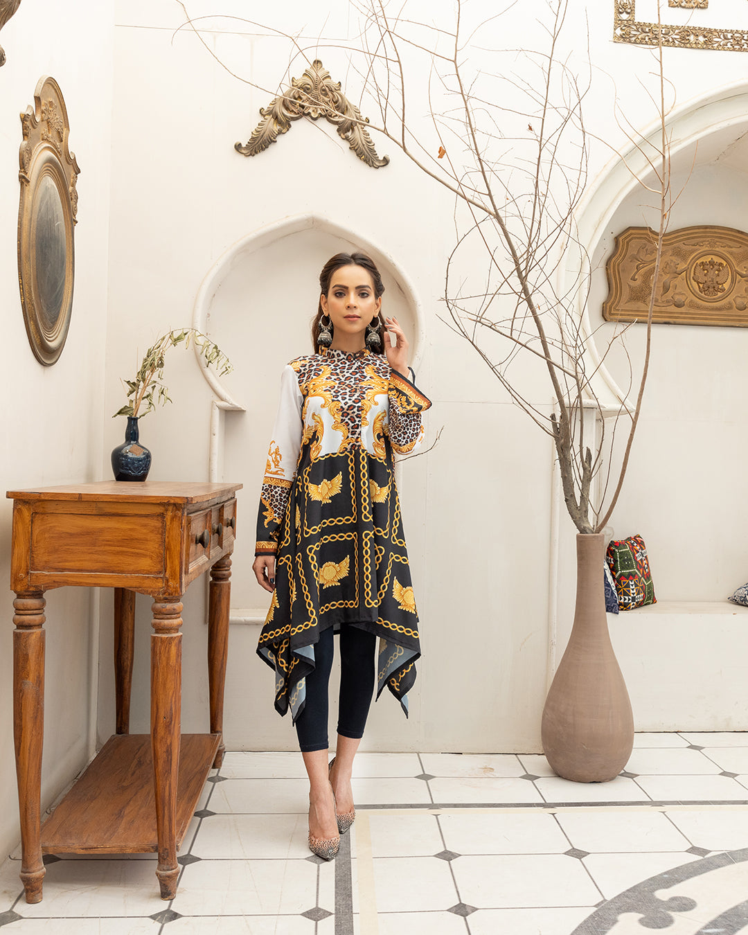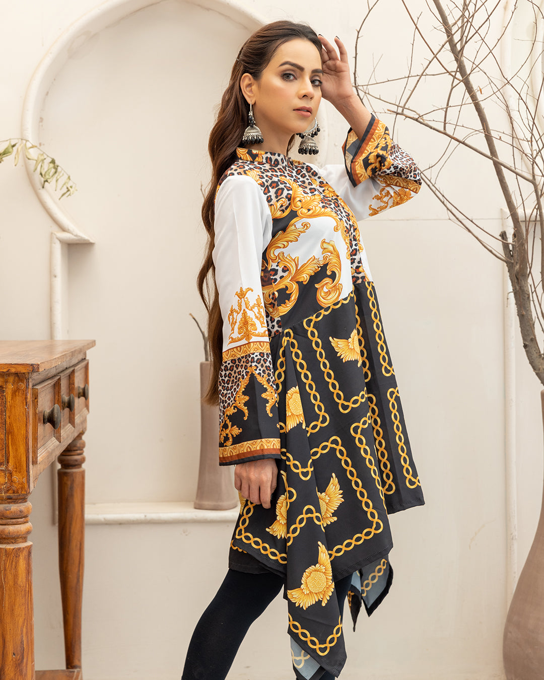 This beautiful printed outfit short frock &made in grip silk fabric Length 34.stitched styleish & westren cutline. Model is wearing size S.