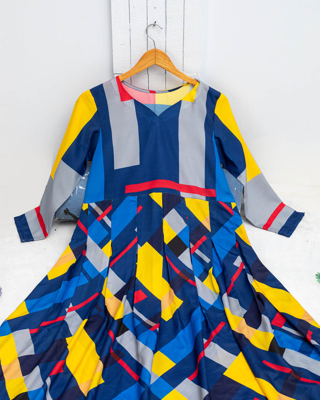Bohemian V-neck Geometric Print Long Maxi Dress