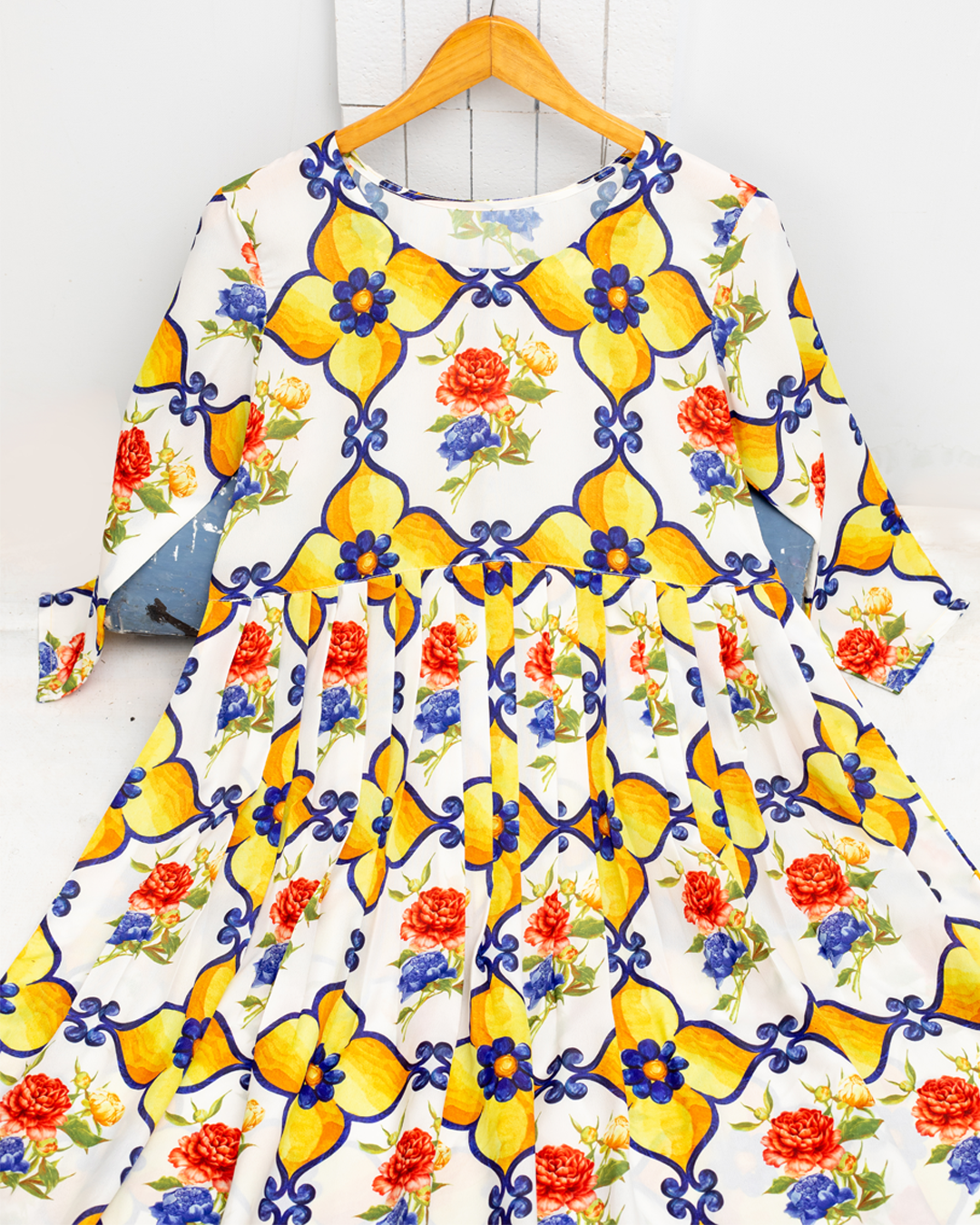 This Maxi made in beautiful print in our new and improved soft GRIP fabric with sweat absorbing properties. Length is 52. Model is wearing small size.