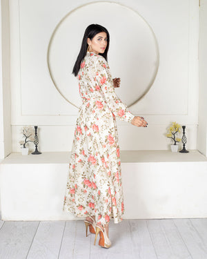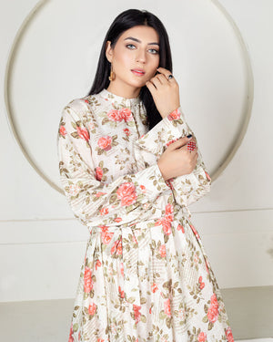 • Running newspaper & flowers  print over the frock,