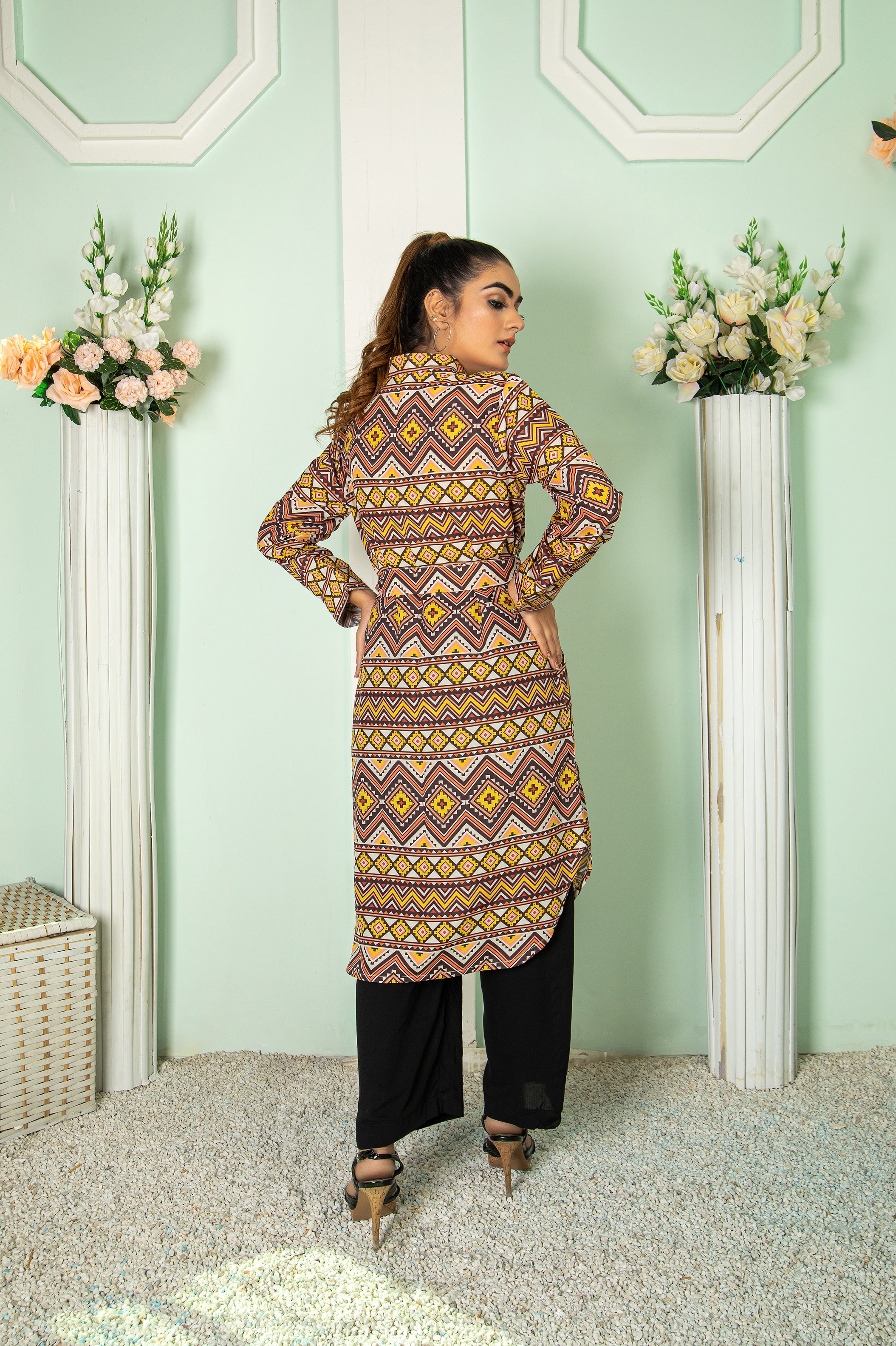 GEOMETRIC SLIM JEANS LONG TOP