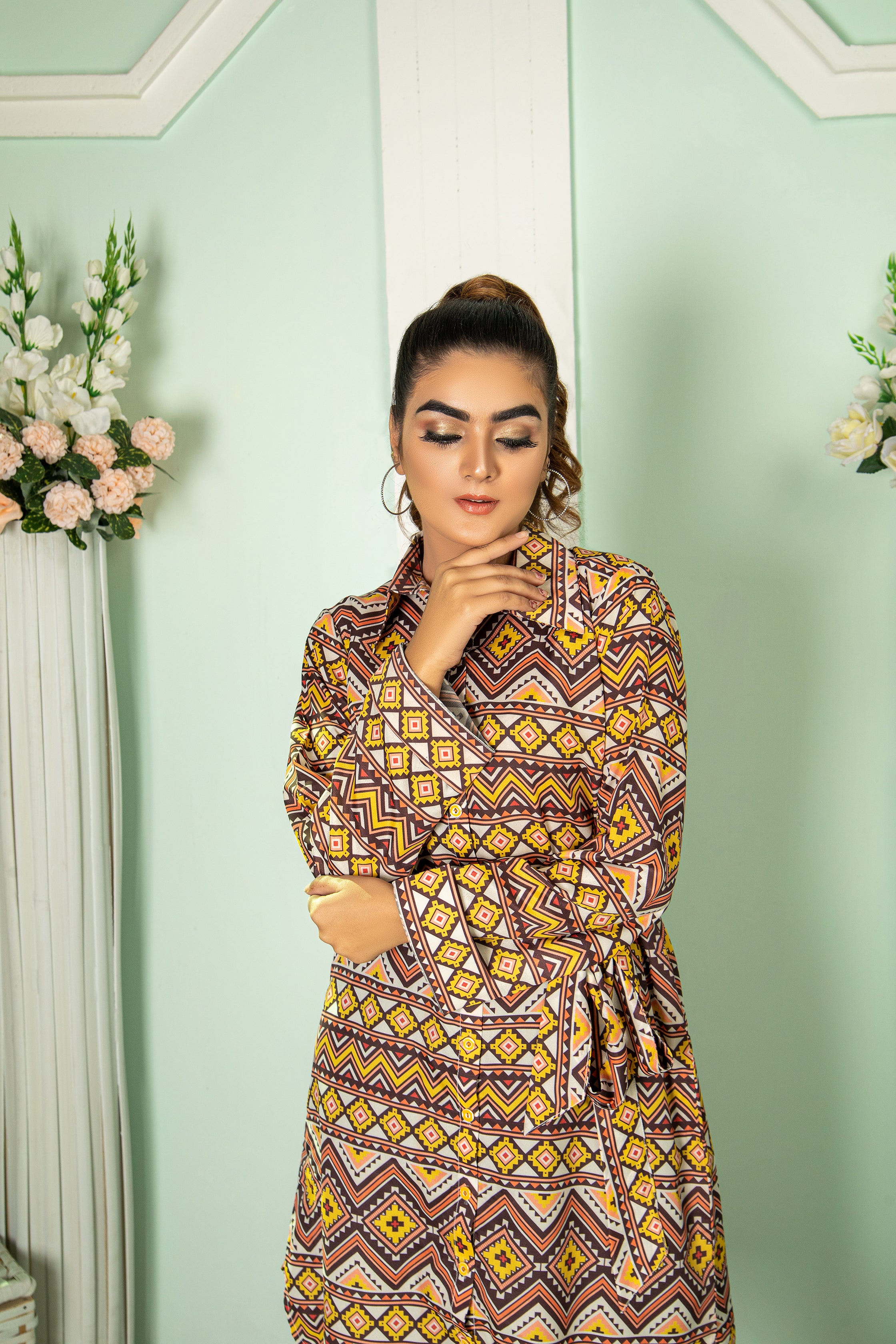 This shirt made in beautiful print in our new and improved soft GRIP fabric with sweat absorbing properties. LENGHT IS 40. Model is wearing small size.