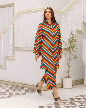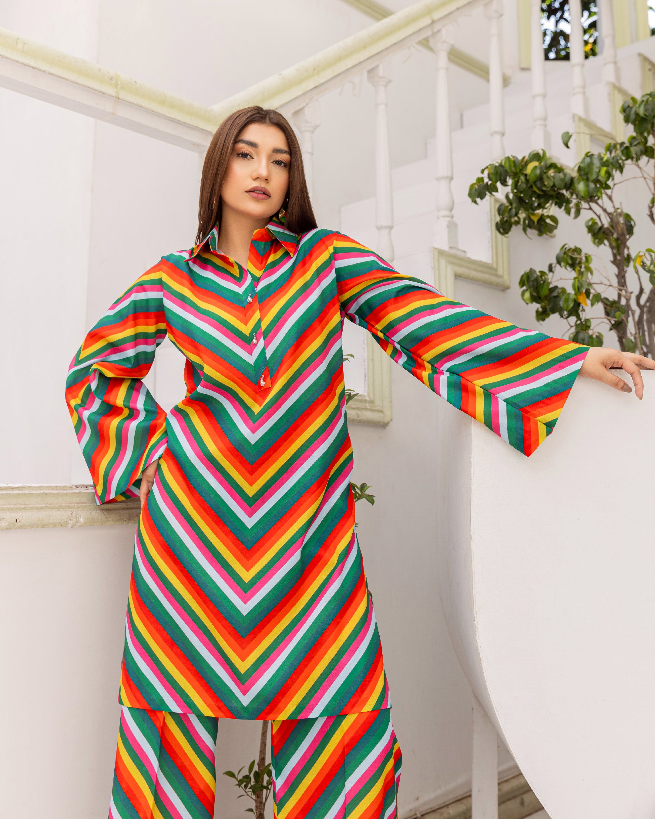 • Stitch with straight  shirt with bell bottom  trouser style,