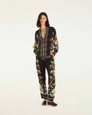 Complementing the shirt, the matching straight-fit trousers feature coordinated floral prints flowing seamlessly from top to hem, giving the ensemble a cohesive and elevated look. Crafted from soft, fluid fabric with a smooth drape, this co-ord set is perfect for day-to-evening wear.