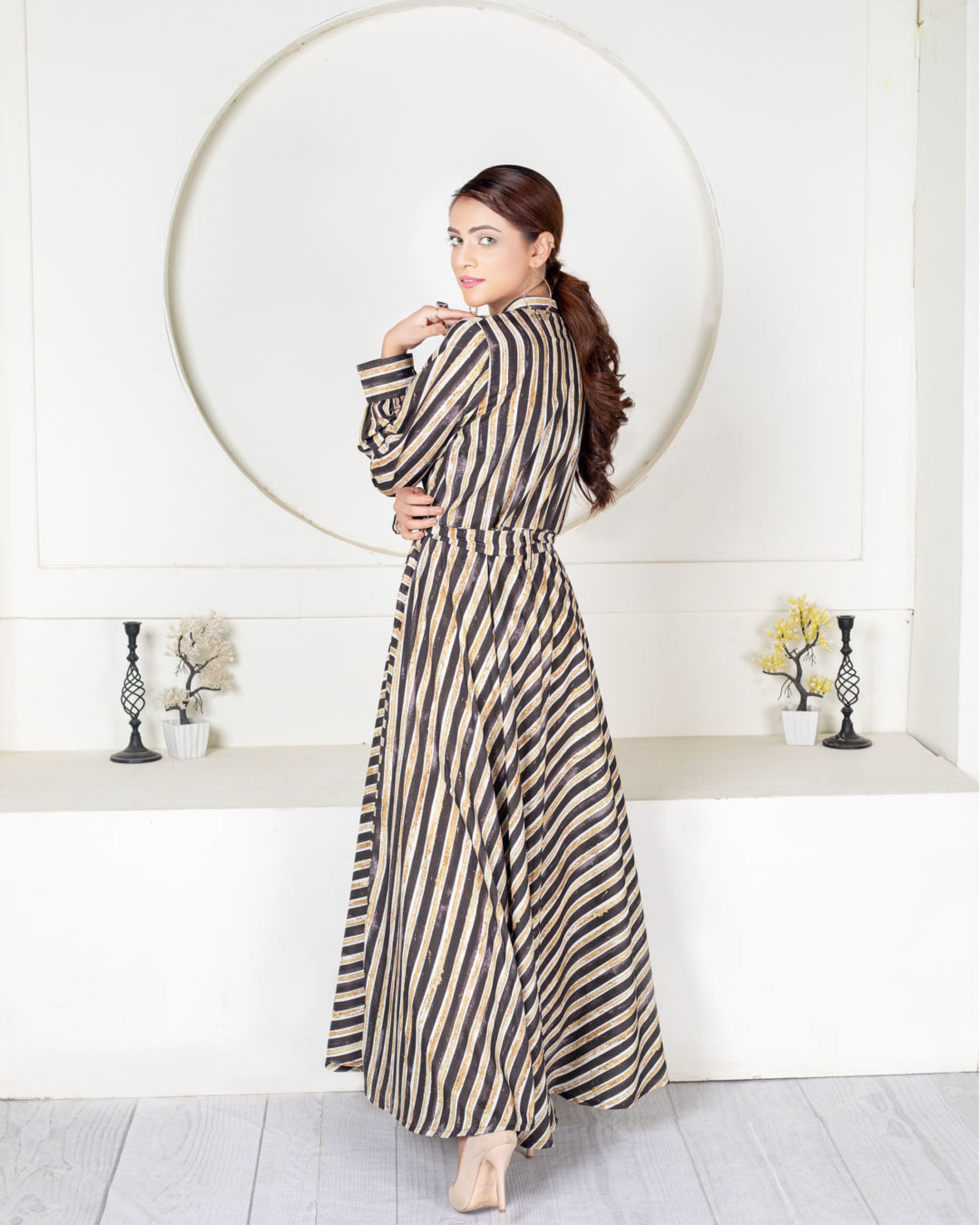 • Stitched one pice umbrella fit look maxi style.