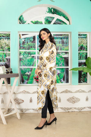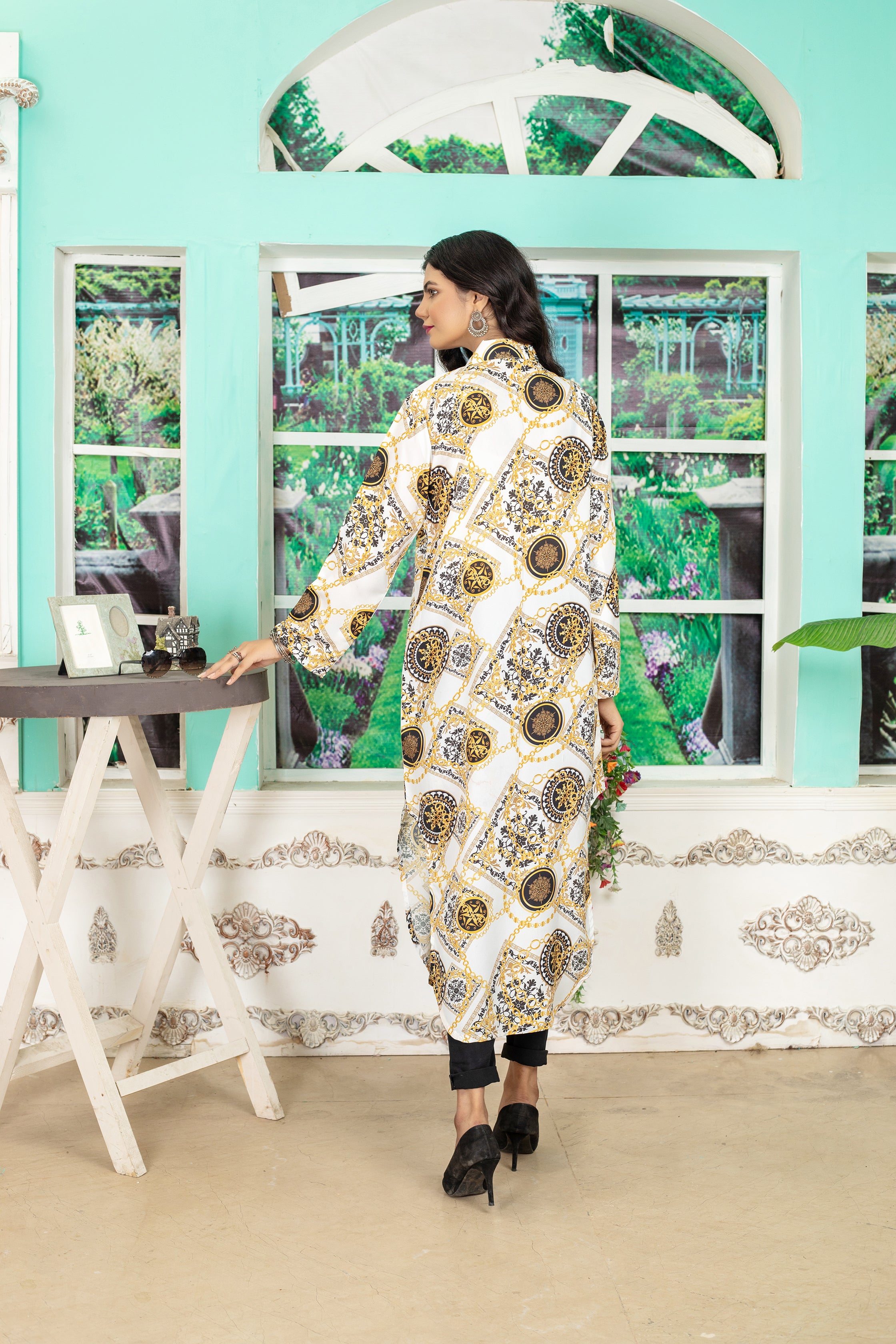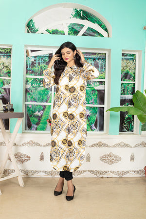 This top made in versace chain and motifs  print in our new and improved soft GRIP  fabric with sweet absorbing properties, features a color & front open button , basic full sleeves.  Length 51. Model is wearing small size.
